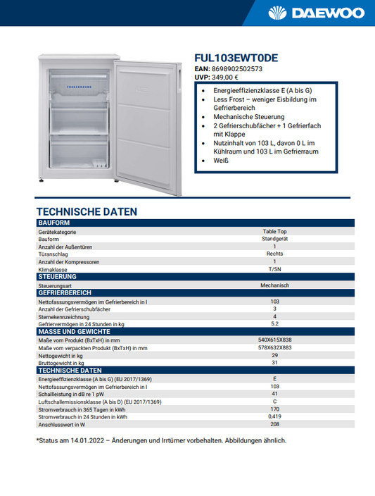 Daewoo FUL 103 EWT 0 ! *Inklusive 5 Jahre Garantie