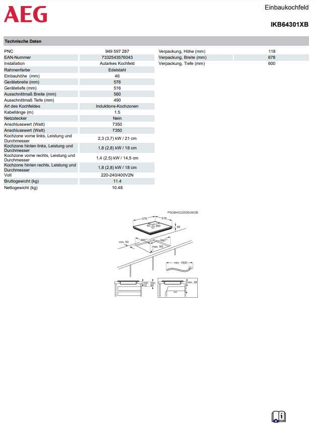 • Elektronische Anzeigen für alle 4 Kochzonen