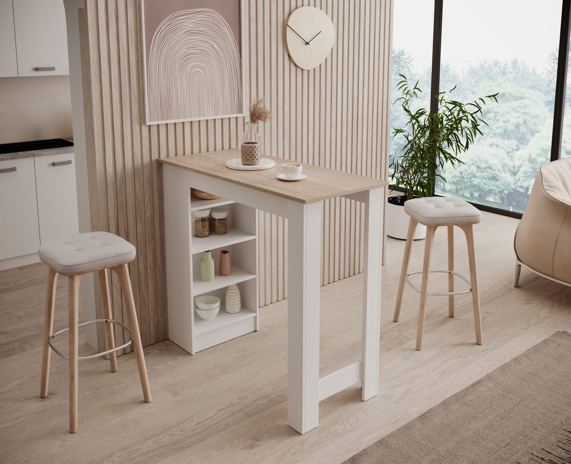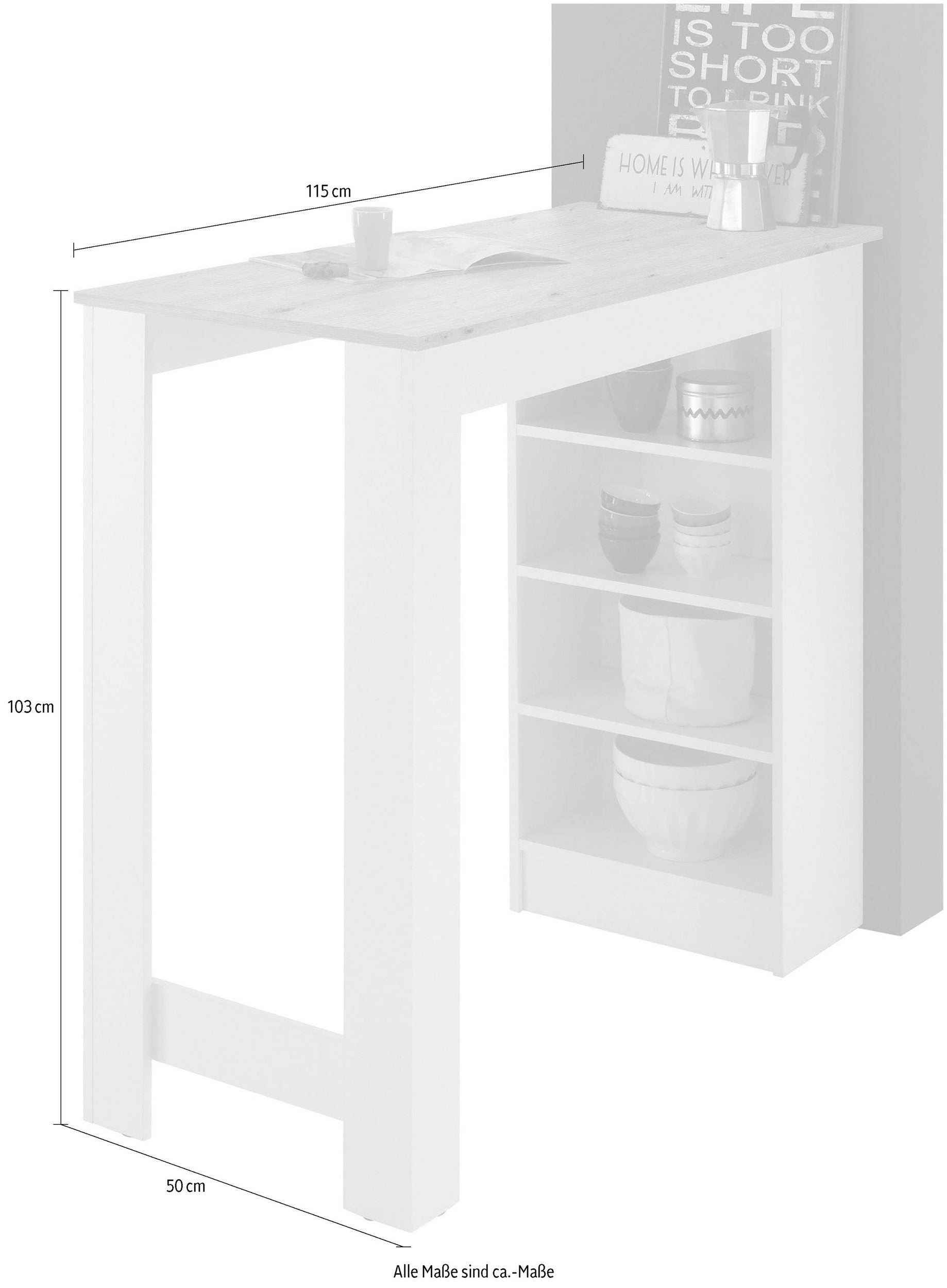 Bartisch mit Regal beidseitig montierbar