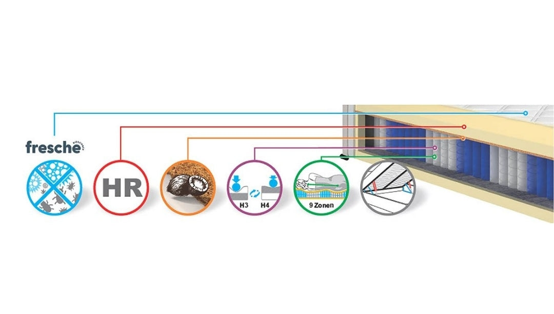 Zonierung: 9 Zonen (ergonomische Aufteilung zur optimalen Unterstützung verschiedener Körperpartien).