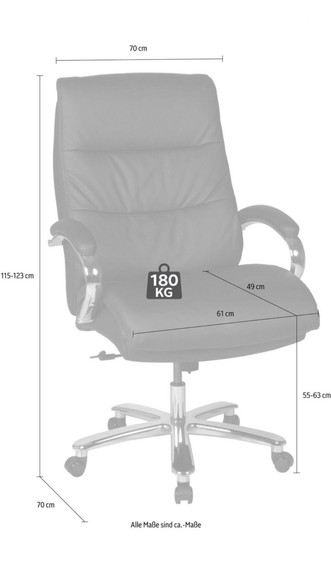 Die Sitzfläche des Chefsessels verfügt über eine abgerundete Vorderkante, die den Druck auf die Oberschenkel reduziert und eine bessere Durchblutung fördert.