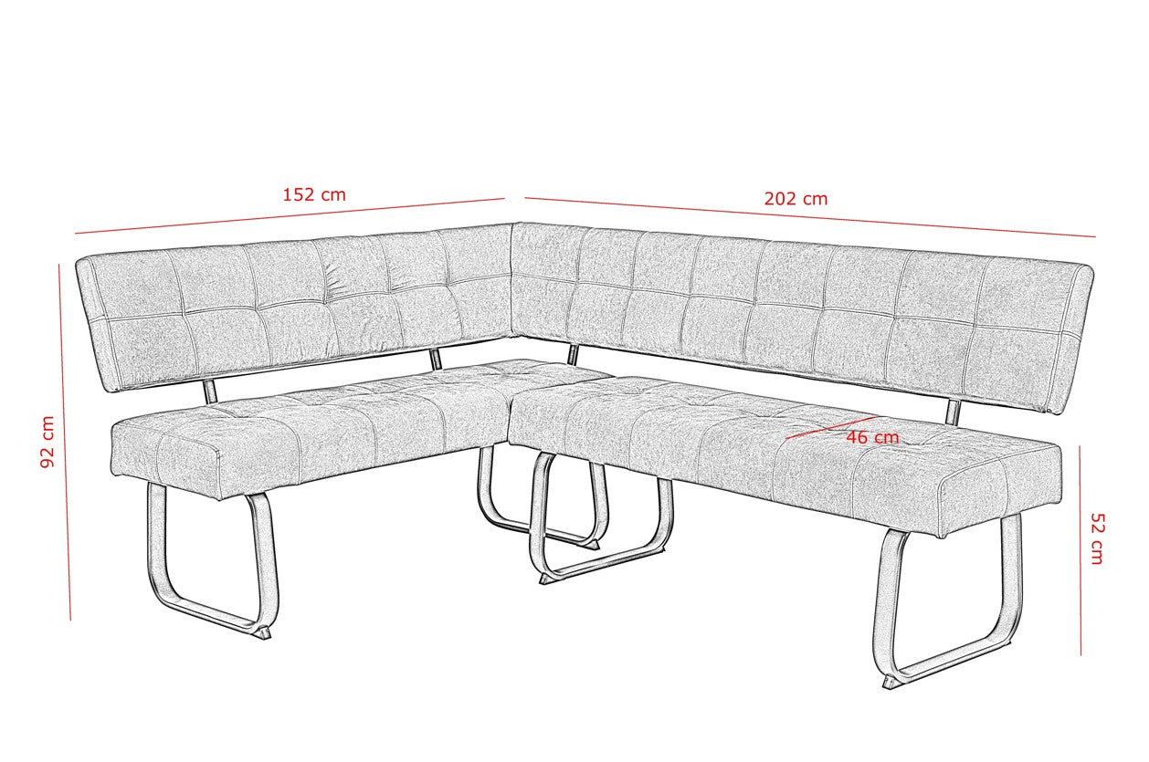 B 152 x B 202 x H 92 cm Sitzhöhe: 52 cm Sitztiefe: 46 cm Gesamttiefe: 65 cm