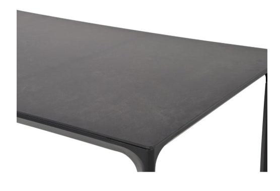 Dieser wetterfeste Tisch eignet sich für den Innenbereich genauso wie für den Außenbereich. Er besticht durch sein puristisches Aussehen und verleiht jedem Zuhause einen modernen Look. Die hohe Stabilität erreicht dieses Prachtstück durch das solide pulverbeschichtetes Aluminiumgestell. Die hochwertige Tischplatte aus Glaskeramik in schwarz meliert wirkt so elegant, dass sie das noble Erscheinungsbild dieses Möbelstücks sehr gekonnt abrundet.