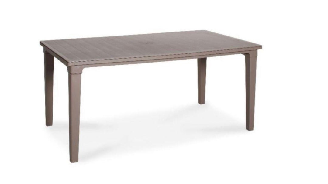 Schlichte Eleganz - der Tisch ist auf das Wesentliche reduziert und bietet mit seiner sattlichen Länge viel Platz für große Tafelrunden. Der elegante Tisch besteht aus einem stabilen und robusten Vollkunststoff (100 % Polypropylen) und sorgt für eine hohe Standfestigkeit. Die Tischplatte besitzt in der Mitte ein praktisches, bei Bedarf abdeckbares Schirmloch. Der Tisch ist pflegeleicht, absolut wetterfest und U.V. beständig. Maße: 165 x 94 cm / Tischhöhe: 74 cm