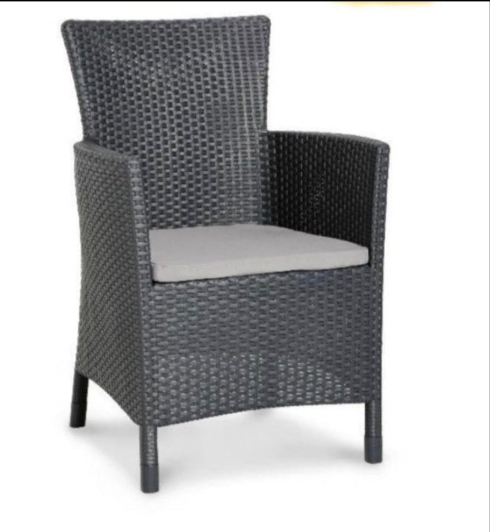 Der kompakte Dining-Sessel Napoli besteht aus stabilem Vollkunststoff (100 % Polypropylen). Die schöne Geflechtoptik (Flachgewebe-Optik) macht diesen Sessel bei jedem Anlass zu einem Blickfang. Die große Sitz- und Rückenlehnenfläche inklusive Sitzkissen mit Reißverschluss (Bezug aus 100 % Polyester) bieten einen angenehmen Sitzkomfort. Der Dining-Sessel Napoli ist sehr pflegeleicht, absolut wetterfest und U.V. beständig. Maße: Gesamtmaß BxTxH in cm: 62x60x89 / Sitzfläche BxT in cm: 47x47 / Sitzhöhe: 44 cm / Höhe der Armlehne: 66 cm / Höhe der Rückenlehne: 47 cm