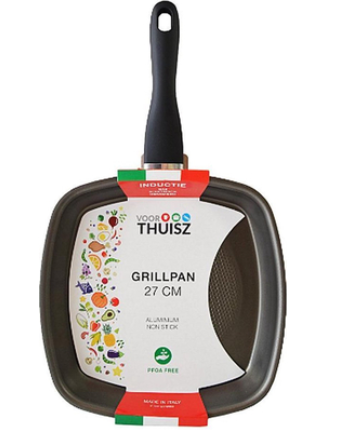 Mit dieser Grillpfanne können Sie im Handumdrehen die leckersten Gerichte zubereiten. Die Pfanne besteht aus 99,5% lebensmittelechtem Aluminium. Die Bratpfanne hat eine hochwertige Antihaftschicht mit einem Wabenmuster. Das Wabenmuster sorgt für eine bessere Wärmeverteilung und eine bessere Antihaftqualität. Die Antihaftbeschichtung sorgt für gesundes und sicheres Kochen. Der Griff hat ein ergonomisches Design mit Soft Touch und liegt gut in der Hand. Darüber hinaus wird der Griff beim Kochen nicht heiß. Die Pfanne ist spülmaschinenfest. Die Thuisz Grillpfanne ist für alle Wärmequellen geeignet, auch für Induktion.