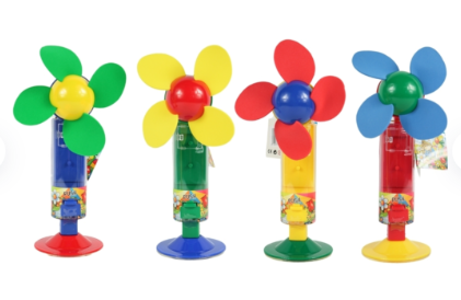 Der Flowerfan Handventilator mit einer Größe von 17 cm ist ein bunter und fröhlicher Ventilator in vier verschiedenen Farbkombinationen. Der Ventilator wird mit 2 AA-Batterien betrieben (nicht enthalten) und bietet unterwegs Erfrischung. Das transparente Fach kann mit Süßigkeiten gefüllt werden, und durch Drücken des Knopfes kommt Süßes heraus, als wäre es ein Süßigkeitenautomat. Der Boden ist mit einem Saugnapf ausgestattet, sodass der Ventilator fest auf einer glatten Oberfläche stehen bleibt.