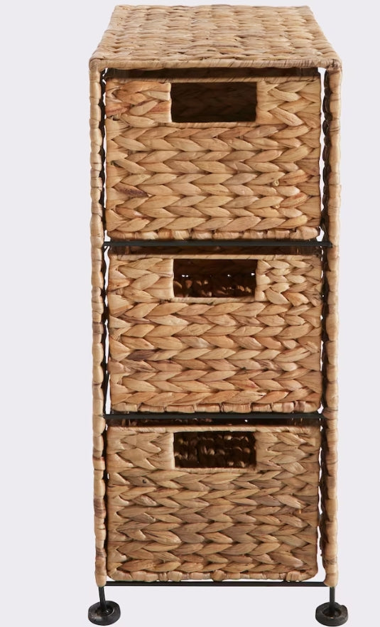 Kommode In Handarbeit gefertigt. Metallgestell, mit Wasserhyazinthe umflochten. Abweichungen möglich. Schubladen mit stabilem Metallrahmen. Aufgebaut.