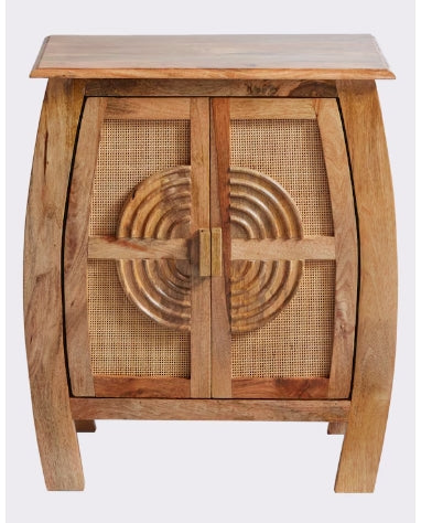 mit 2 Türen aus massivem Mangoholz gefertigt.