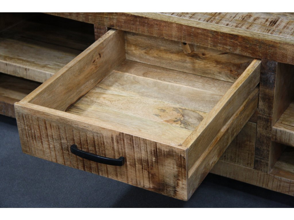 Gefertigt aus massivem Mangoholz im Industrial- oder Landhausstil, bringt es Wärme und Natürlichkeit in Ihr Wohnzimmer.