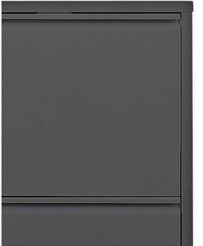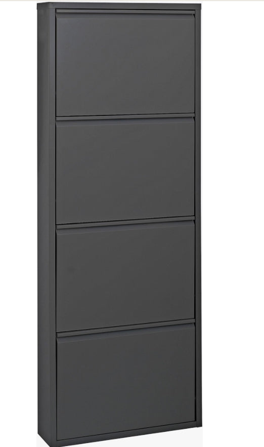 Schuhkipper Aus Stahlblech, farbig pulverbeschichtet. Pro Klappe Platz für ca. 2-3 Paar Schuhe.