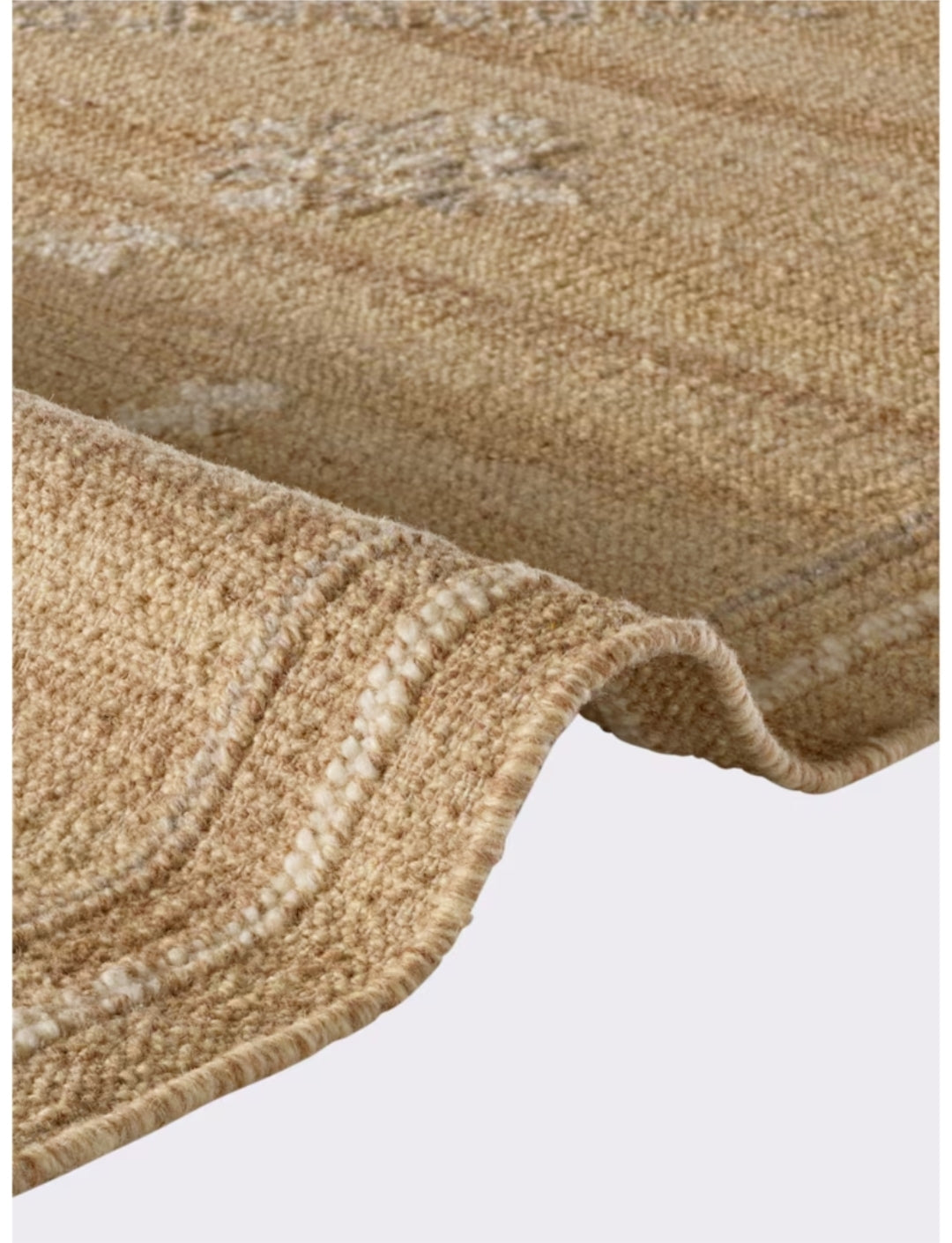 Kelim Handgefertigtes Flachgewebe mit traditionellem Muster und eingearbeiteter Fransenkante an den Schmalseiten.