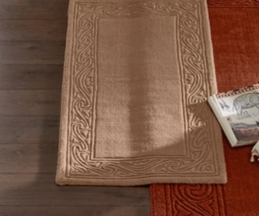 Hochflorteppich mit aufwendiger Relief-Bordüre, von Hand geschnitten.