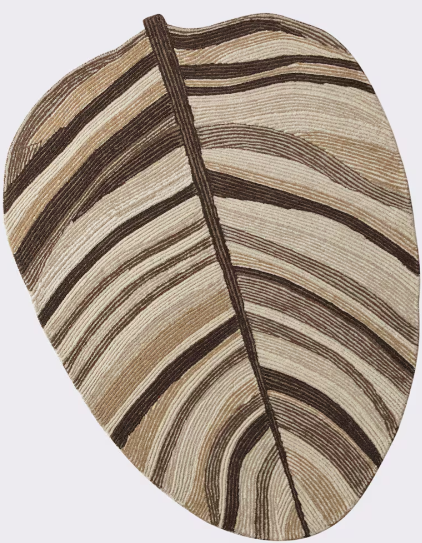 In ausgefallener Blattform, aus reiner Schurwolle. Effektvoller Mix aus offenem Flor und Schlingenflor. Kanten gekettelt. Mit Textilrücken. Für Fußbodenheizung geeignet. Von Hand getuftetes Naturmaterial, leichte Abweichungen möglich.