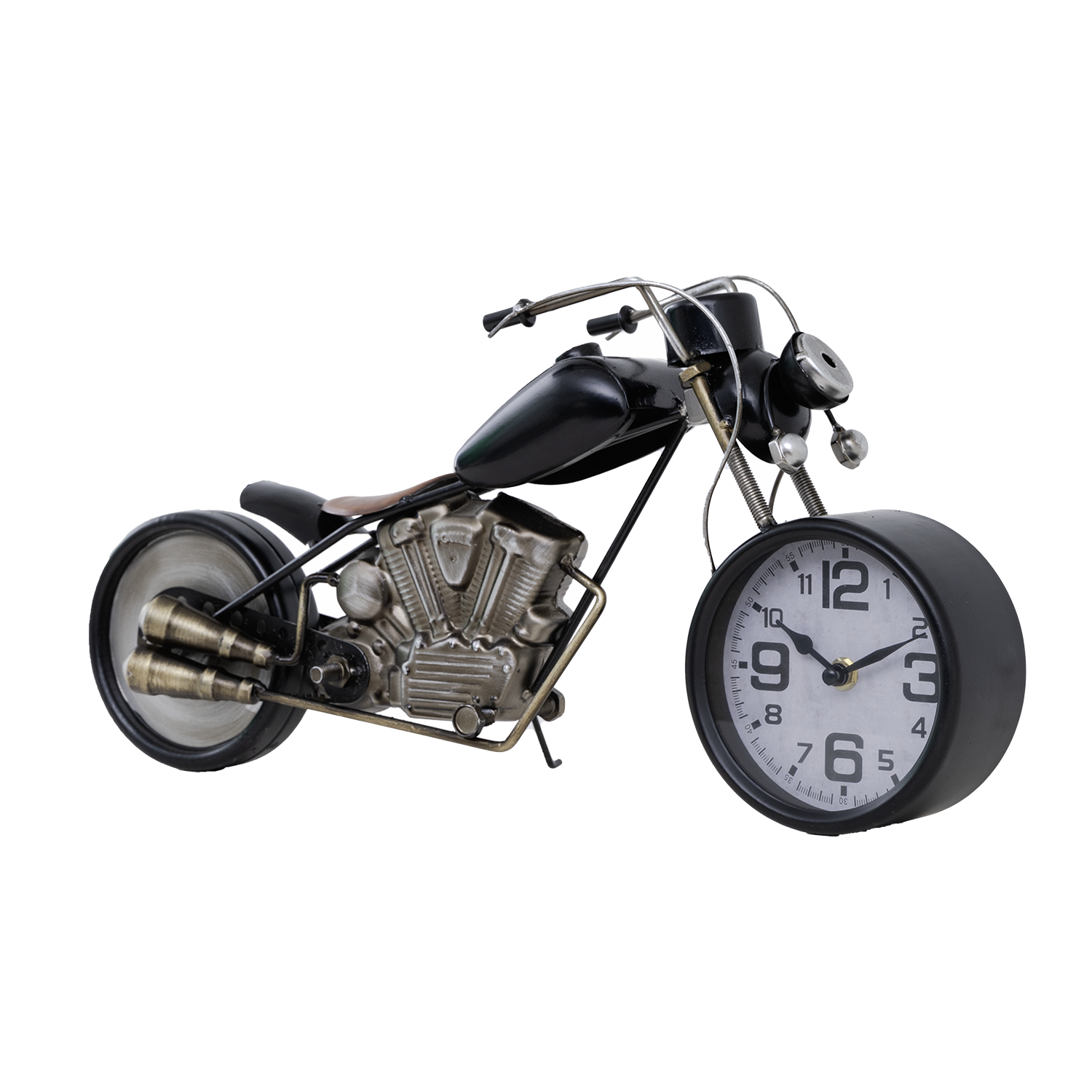 Entfesseln Sie die Macht der Zeit mit unserer robusten Tischuhr in Motorradform! Diese einzigartige Uhr aus robustem Metall bringt die pure Energie der offenen Straße in Ihr Zuhause. Das schlagende Herz dieser Uhr ist das Vorderrad, dessen jedes Ticken die Leidenschaft für Abenteuer und Präzision verkörpert. Verleihen Sie Ihrem Zuhause einen Hauch von Rebellion und lassen Sie diese Uhr stilvoll die Zeit reiten. Bringen Sie Ihr Zuhause mit unserer Tischuhr in Motorradform auf Hochtouren!