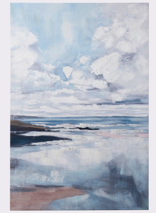 Bild Mit maritimem Motiv. Hochwertiger Kunstdruck, teils von Hand bemalt, Abweichungen möglich. Leinwand auf Holzrahmen gezogen.
