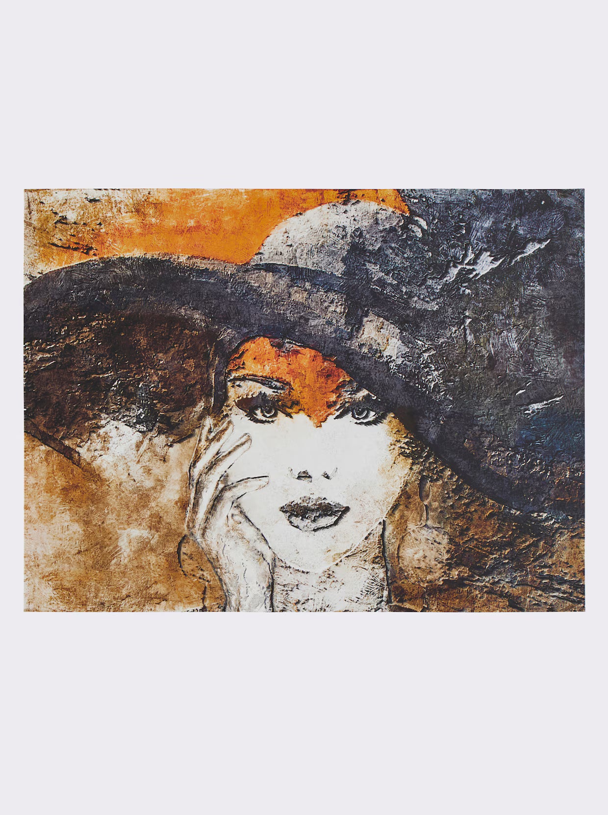 Bild Motiv Frau mit Hut. Hochwertiger Kunstdruck in 3D-Optik. Kunstleinwand, auf Holzrahmen gezogen.