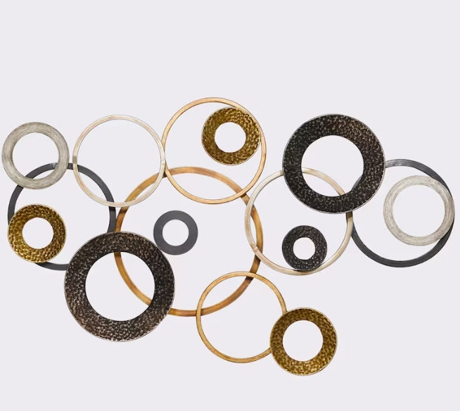 Wanddeko Aus Metall, mehrfarbig lackiert und antikisiert. Teilweise mit Hammerschlagoptik. Hoch- und Queraufhängung möglich.
