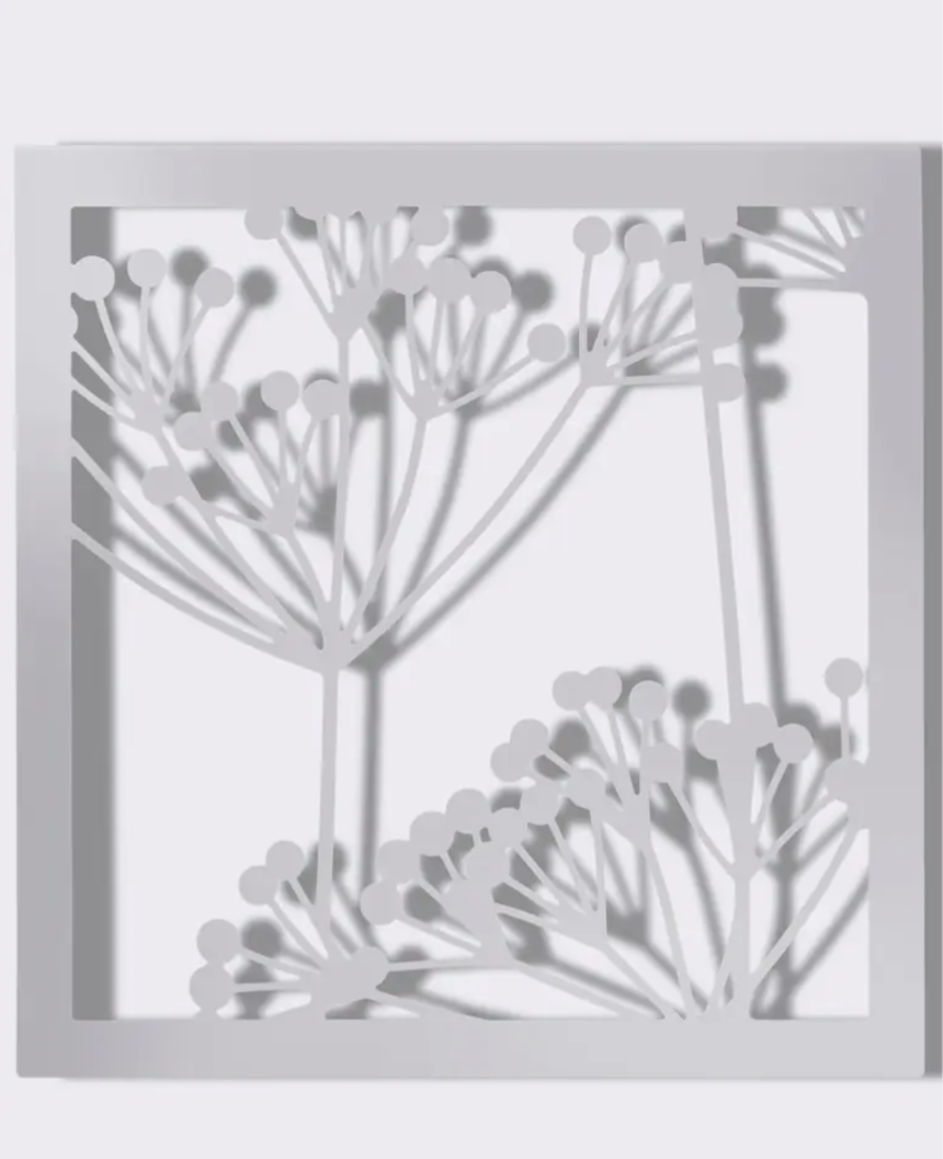 Memoboard und Dekoration. Metall, pulverbeschichtet. Mit Durchbrüchen zum Einhängen von Haken oder Bügeln. Zur Wandmontage