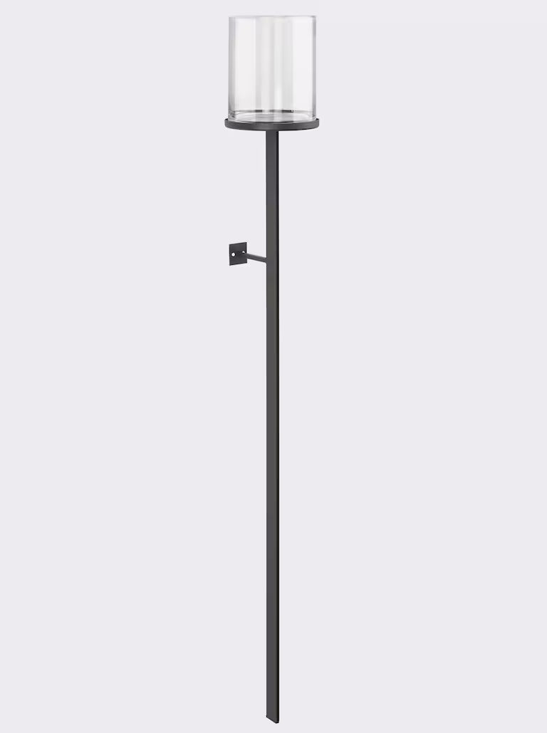 Windlicht Gestell aus schwarzbraun lackiertem Metall. Mit Glaszylinder, Hxø ca. 25x20 cm. Zur Wandmontage. Ohne Kerzen.